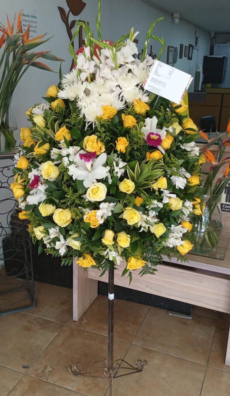 Arreglo fúnebre, con planta de phalenopsis, y variedad de orquideas